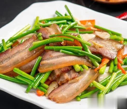 蒜苔炒腊肉食材:蒜苔300g、腊肉150g、蒜片3瓣、青红椒丝各适量、料酒1勺、生抽1勺