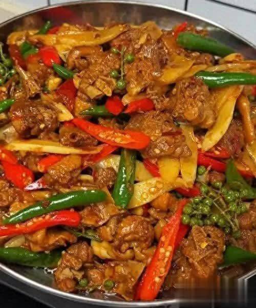 2、放少许酱油、干辣椒、泡椒丝炒下,放一罐啤酒和清水,汤开了后煮两分钟,再盖上锅盖焖煮40分钟,放蒜头、食盐炒香,放花椒、青红小米辣、仔姜炒出香味;
