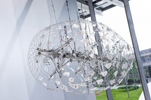 赵潇潇,《云图》,2022,铝、电子元件、碳纤维杆。晋城“古建新语”当代艺术展——“斗转星移”艺术家群展展览现场,晋城城市体验中心,2025。图片由UCCA Lab提供。