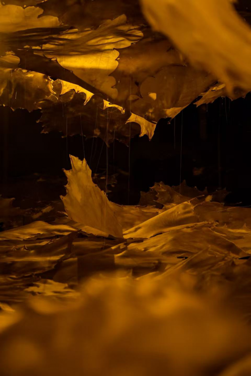展览聚焦于补天行动的第八十日——苍穹即将完整的临界时刻。艺术家运用天然材料与综合媒材,塑造出象征“天空裂痕”的空间意象。作品通过高度感官化的艺术语言,将文本神话转化为可触可感的身体经验,邀请观众进入介于破坏与修复、混沌与秩序之间的阈限空间,串联起远古想象与当下感知的仪式现场。观众在穿行、触摸中,不仅可以直观感受到材料的生命力,更在互动中开启一场跨越古今的时空之旅,思考与聆听“文明回响”——古老智慧从未远离,它始终与当代人的精神世界紧密相连。
