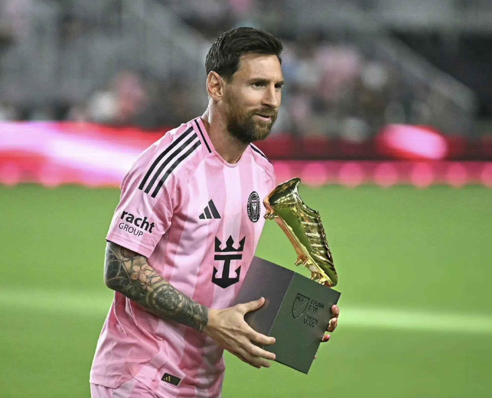 近日梅西与迈阿密国际续约到了2028年,世界杯后梅西还会踢2年,本场比赛是梅西续约后首战。在开赛之前,梅西领取了美职联金靴。梅西本赛季为迈阿密国际出场43次,40次首发,打入37球助攻18次,其中美职联28次出场26次先发贡献29球16助,射手榜第1助攻榜第2。在梅西本赛季为迈阿密登场的第44场比赛中,阿根廷球王又进球了。